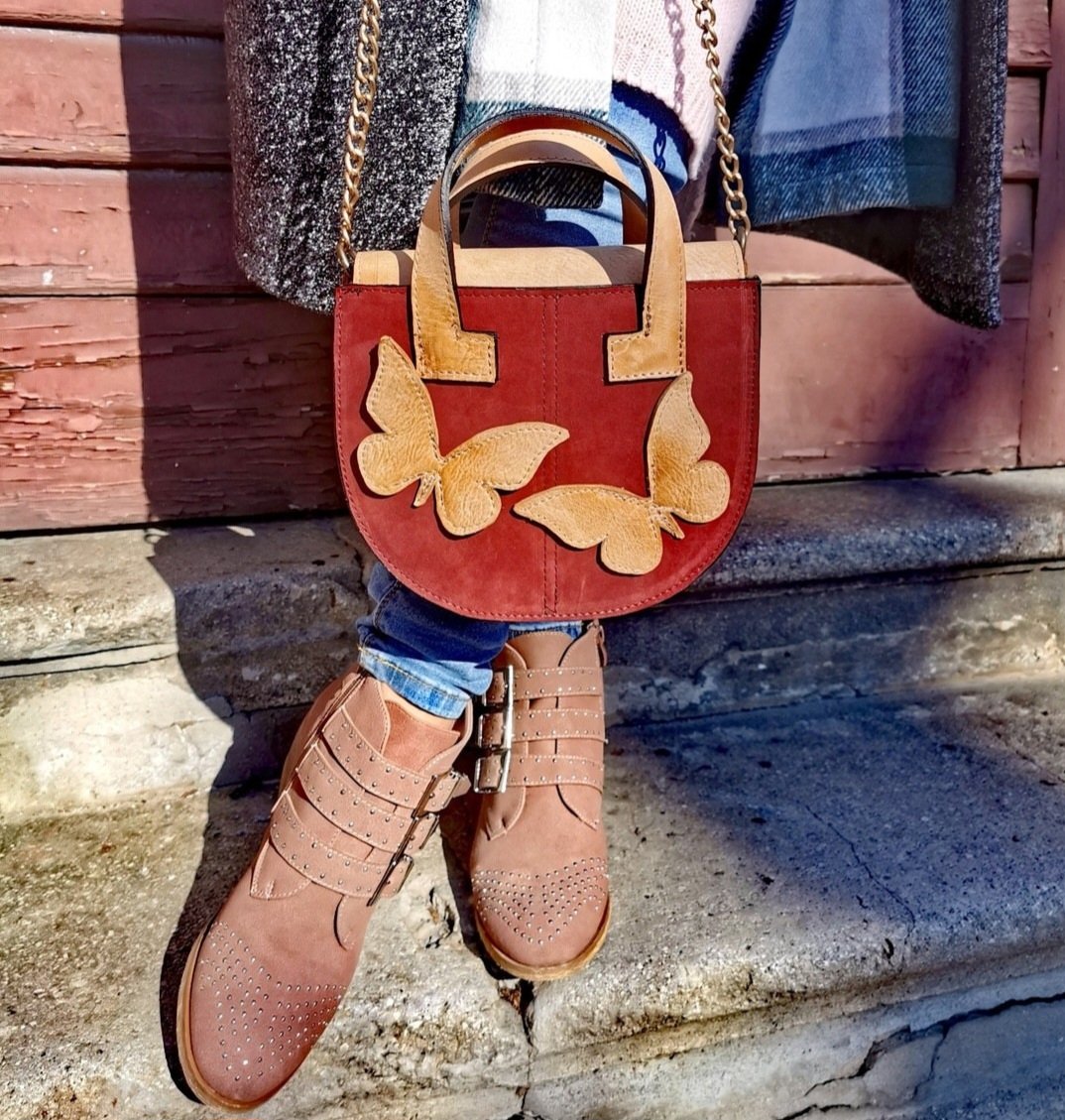 Ova torba izrađena je s naglaskom na estetiku, kvalitetu i prepoznatljiv dizajn. Kombinacija tekstura, pažljivo odabranih boja i upečatljivih leptir aplikacija čini je jedinstvenim modnim dodatkom koji se ističe u svakoj kombinaciji. Svaki model donosi svoju priču: od toplih zemljanih tonova i bogatih crvenih nijansi, do svježih zelenih i elegantnih kontrasta.