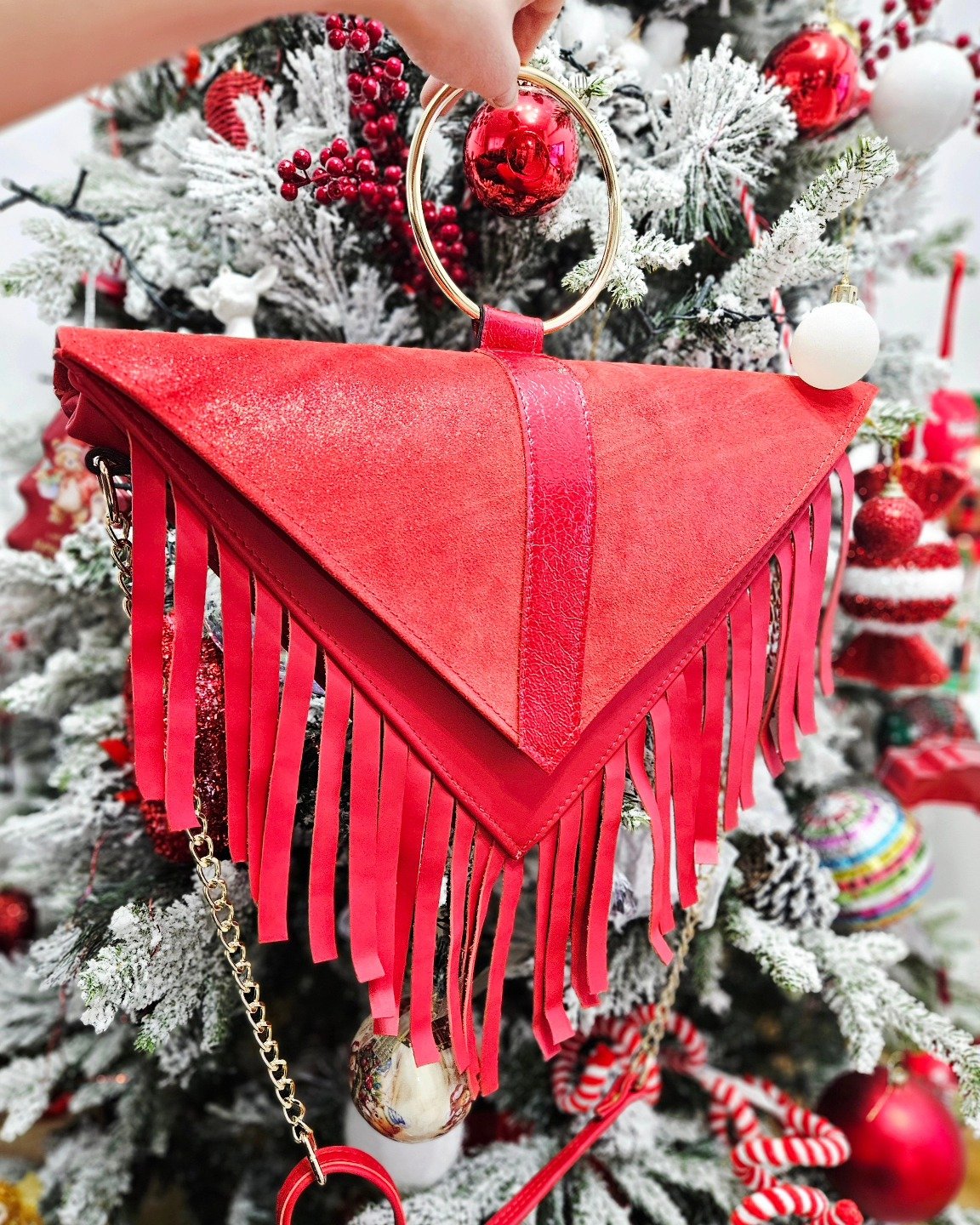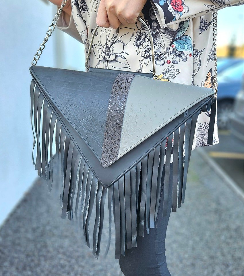 Torbica Trokut donosi geometrijsku preciznost u svijet mode – upečatljivog oblika, s dinamičnim resama i jasnim linijama, ovaj model je savršen za one koji traže nešto drugačije. Njezina trokutasta silueta i detalji poput resica čine je vizualno intrigantnom, dok dimenzije 37×20×7 cm osiguravaju dovoljno prostora za svakodnevne potrepštine.