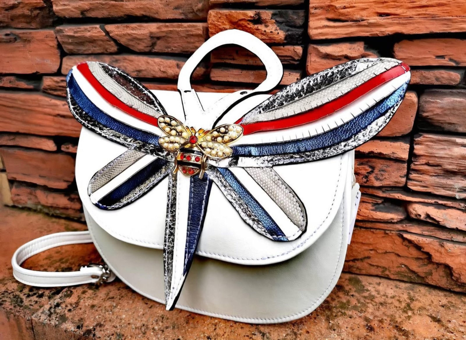 Torbica Vilin konjic II predstavlja spoj profinjenog dizajna i funkcionalnosti, idealna za žene koje cijene unikatne modne dodatke. Ručno izrađena u dimenzijama 25x20x8 cm, ova torbica nudi dovoljno prostora za svakodnevne potrepštine, a istovremeno zadržava elegantan i kompaktan izgled. Dizajnerica Lucija Vrcić inspiraciju crpi iz prirode i simbolike vilinskog konjica – simbola lakoće, transformacije i gracioznosti. Svaki model izrađuje s posebnom pažnjom, a boje se biraju individualno, u dogovoru s kupcem, čime se osigurava da svaka torbica bude jedinstvena. Cijena ovog modela iznosi 125 €, a dostupna je isključivo po narudžbi.